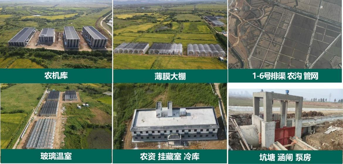 科教基地一区(3480亩)一阶段科教设施(挂藏室、农资库、玻璃温室、薄膜大棚等计1.49万m2)完成主体建设,10万m2道路、7.1km围栏、16个水塘及大田整治已完成,二阶段科教设施设备采购和安装、微生物发酵工厂、防虫网室、 配套工程已开始施工,整体预计2026年5月交付。