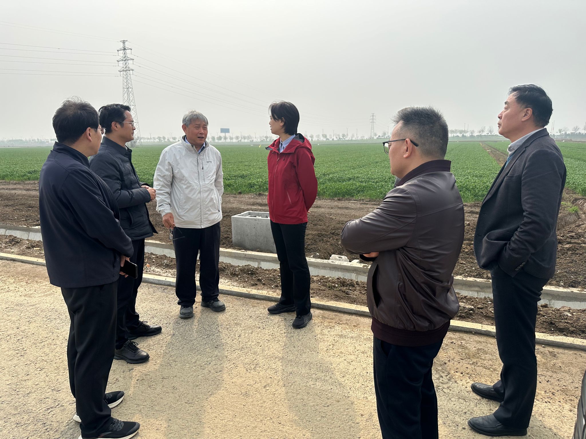 调研组一行首先深入科教基地一区,实地察看了田间基础设施工程建设进展及作物生长态势。工作人员向调研组详细汇报了基地冬小麦试种情况,重点介绍了相关科研团队开展的课题研究、研究方向、新品种示范推广及其优势特点,初步展示了基地支撑在农业科技研发与成果转化方面的作用发挥。