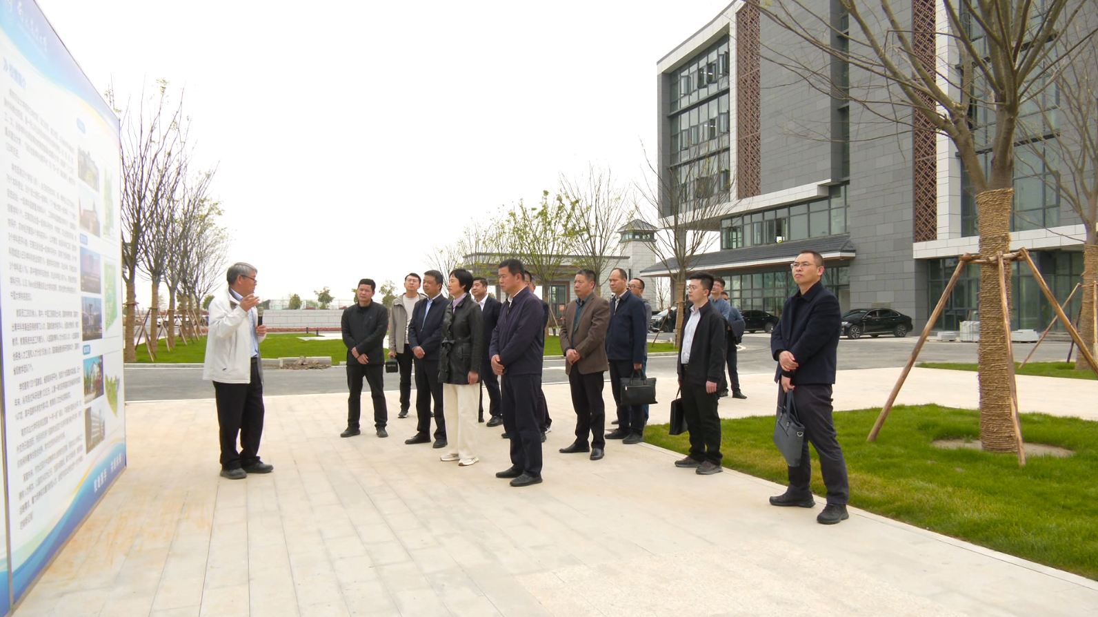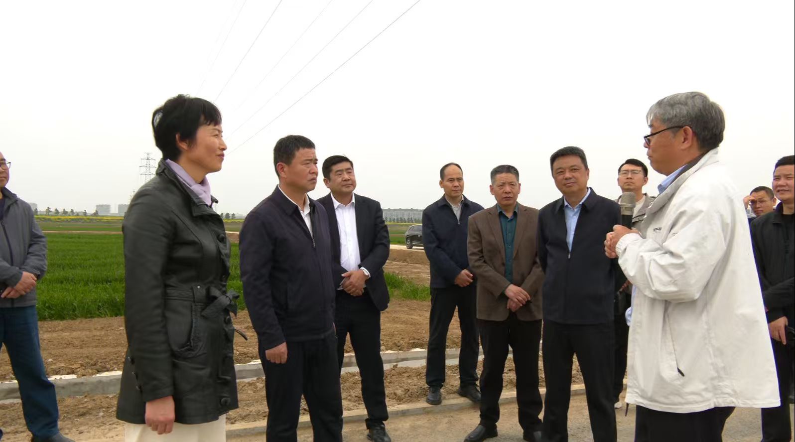 在科教基地一区,考察组深入田间地头,详细了解了农田改造提升工程及农业基础设施建设情况,重点询问了田间道路、灌排沟渠的配套标准,并实地考察了科研团队的小麦试种长势。考察组对园区“产学研”一体化发展的硬件基础表示赞赏,认为园区建设标准高、功能设施完善,充分体现了现代农业科研的创新需求。