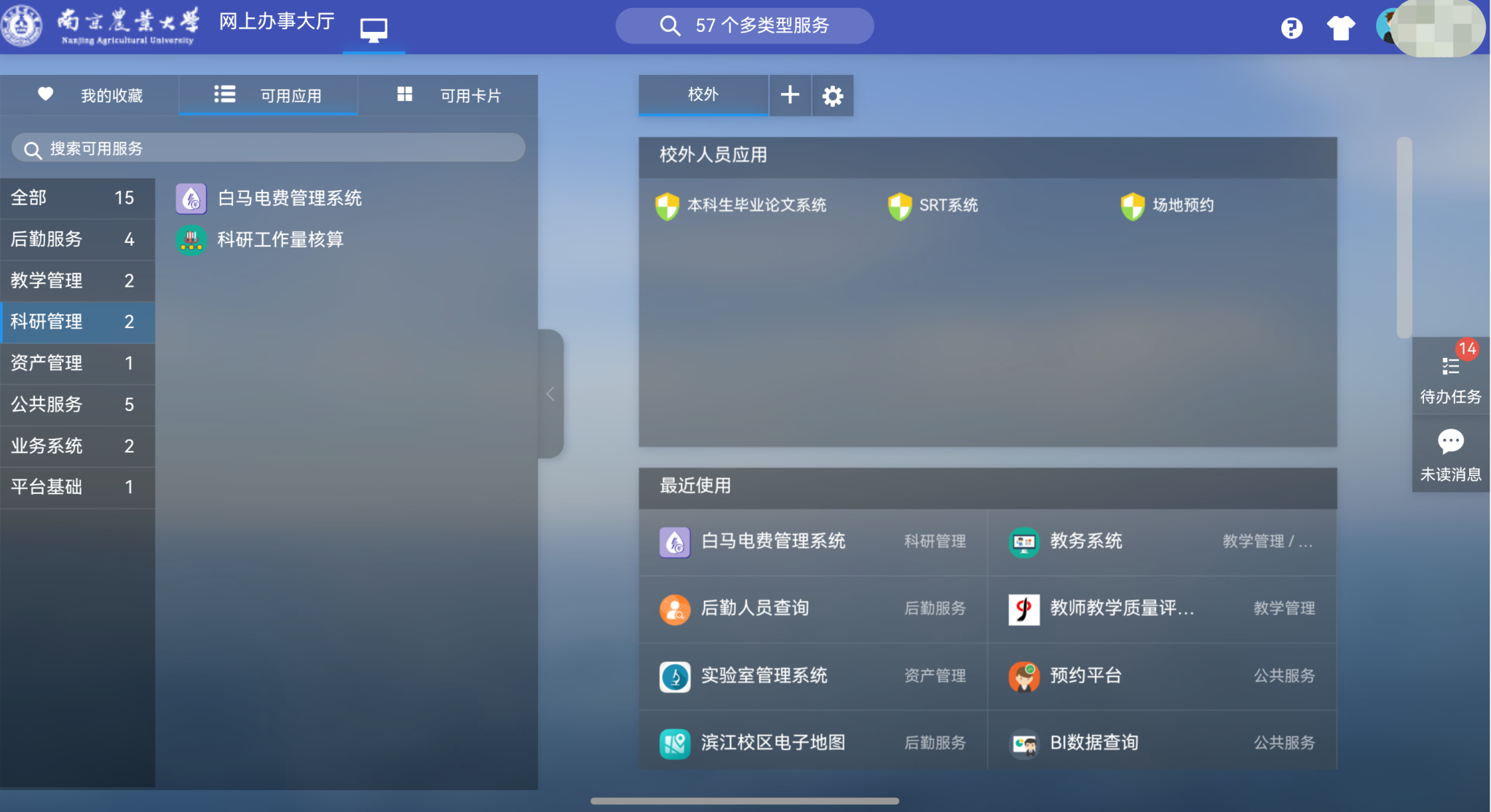 南京农业大学网上办事大厅→科研管理→白马电费管理系统